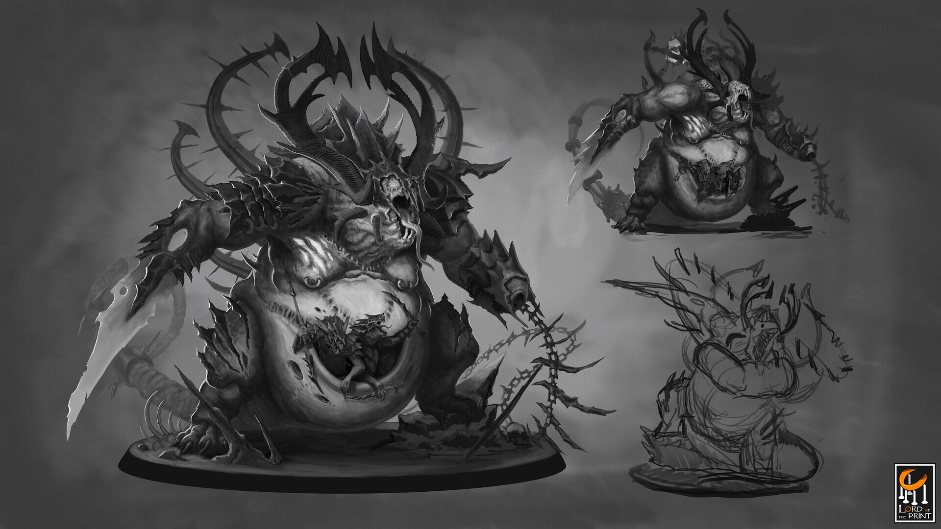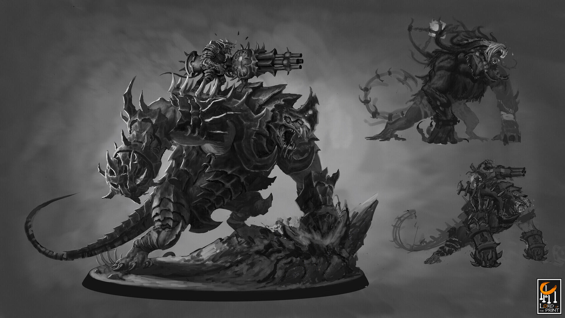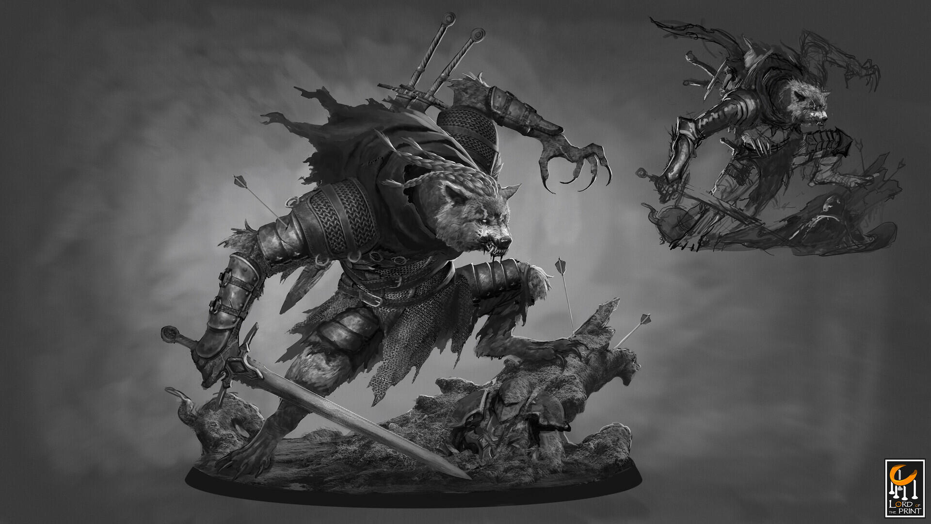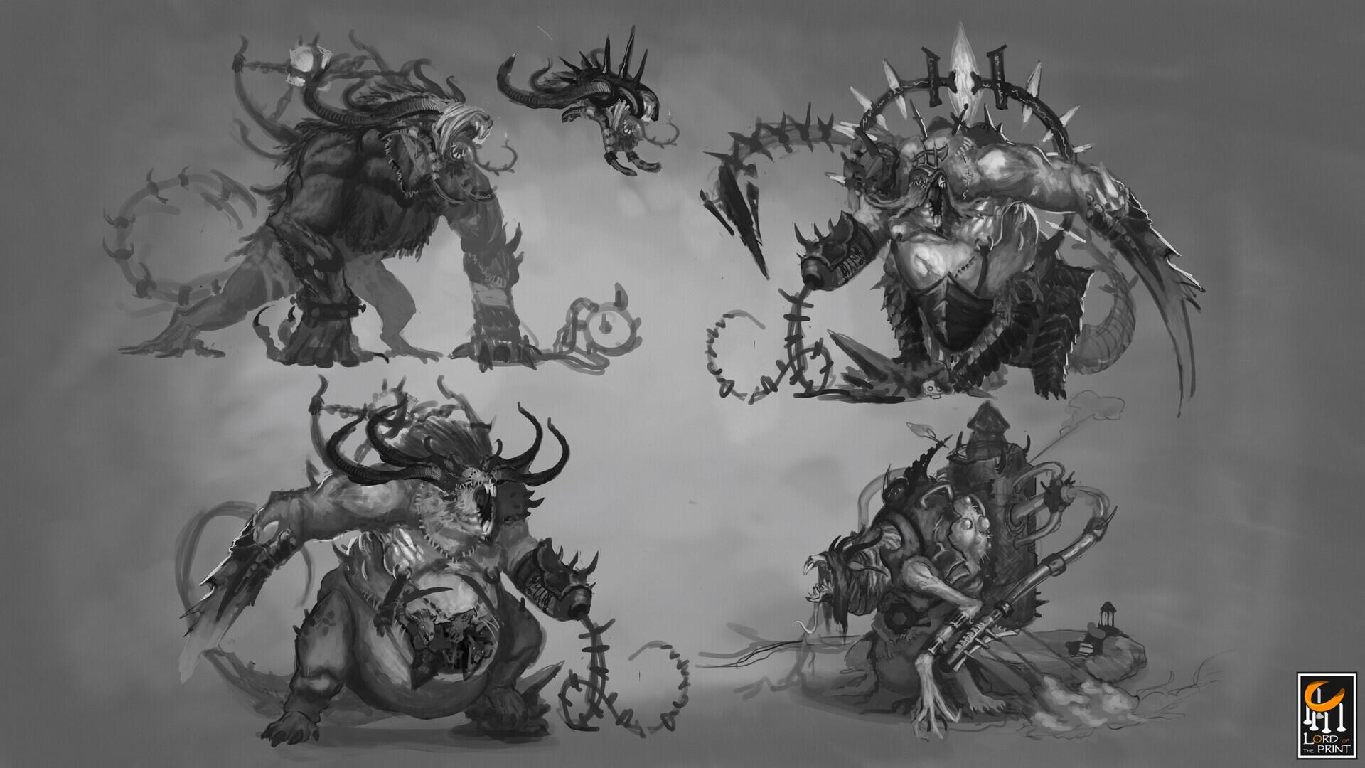 This section showcases the concept work I created during my time as a freelance concept artist for Rescale (formerly known as Lord of the Print). My role involved designing creatures intended to be sculpted and produced as miniatures for tabletop RPGs, miniature painting, and related hobbies. I contributed to themed monthly releases, developing a wide range of designs—from dragons to werewolves.